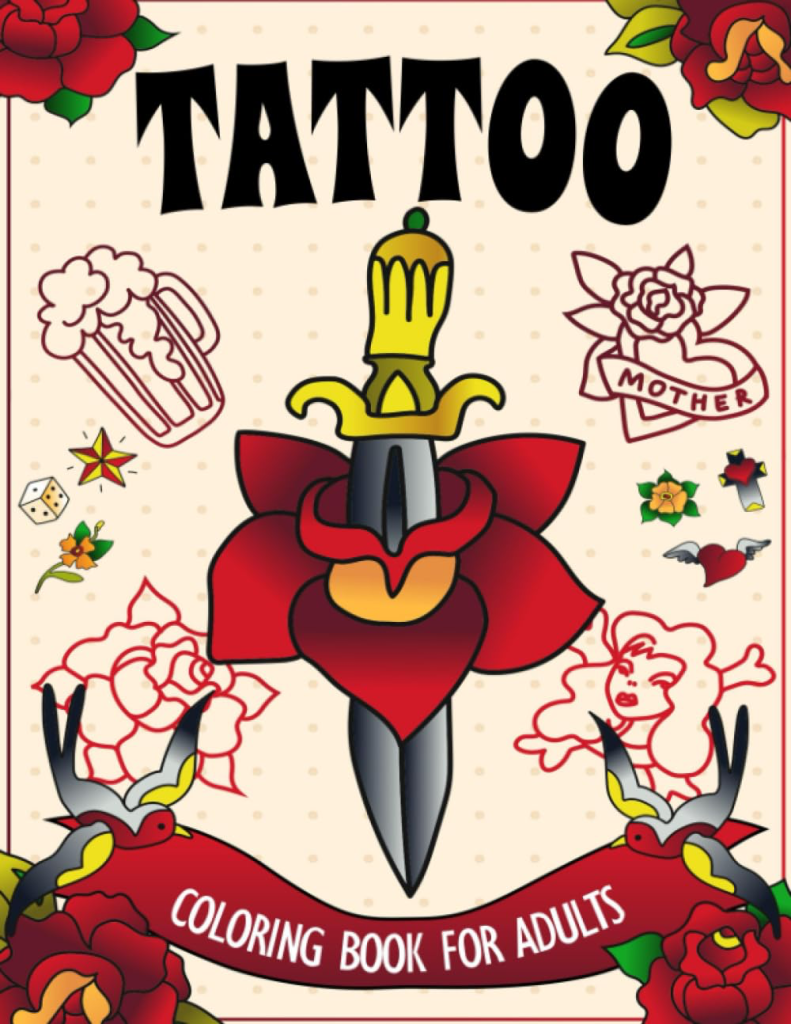- Tattoo – Colouring book for adults, https://www.amazon.co.uk/Tattoo-Coloring-Book-Adults-Relaxation/dp/B0CHVZLB37/ref=asc_df_B0CHVZLB37/?tag=googshopuk-21&linkCode=df0&hvadid=658883960063&hvpos=&hvnetw=g&hvrand=6827682428901774758&hvpone=&hvptwo=&hvqmt=&hvdev=c&hvdvcmdl=&hvlocint=&hvlocphy=9046256&hvtargid=pla-2205851744366&psc=1&th=1&psc=1 [Accessed 4/11/2023 ] ↩︎