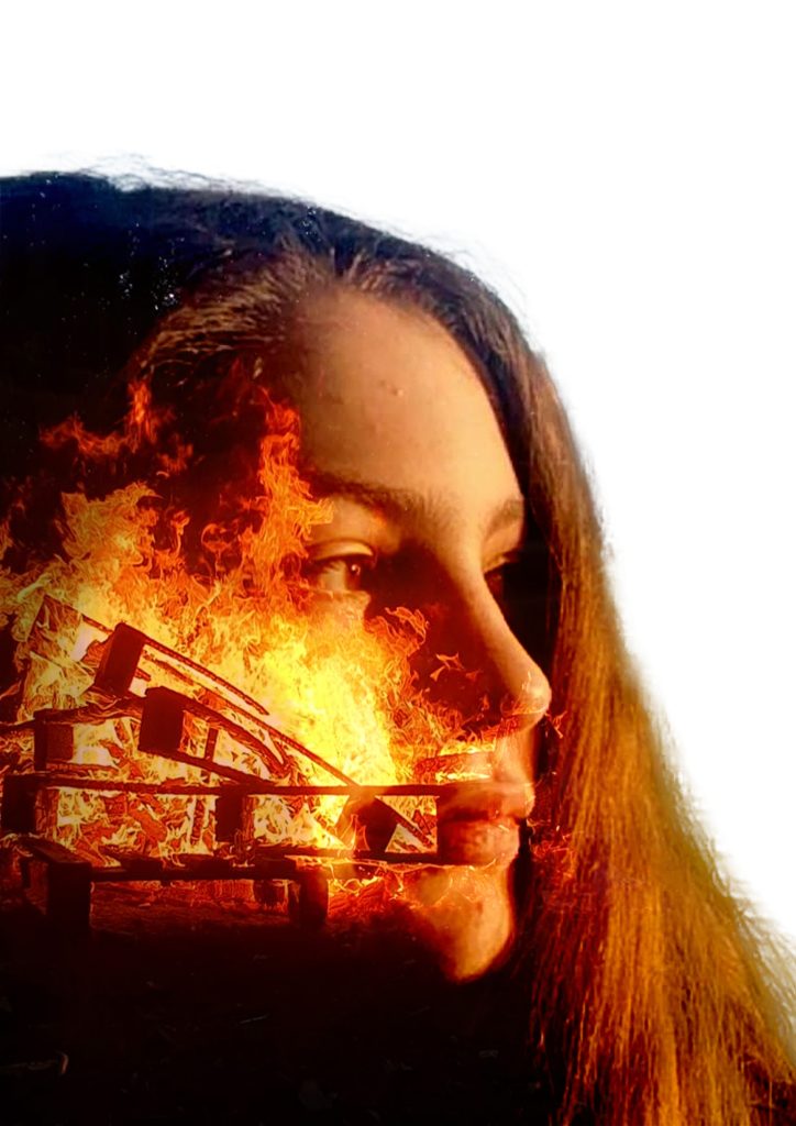 When the background is black, the images all blend together, making the portrait hard to view. To prevent this I changed the background to white, allowing a contrast between the lightness of the background and the darkness of the fire.