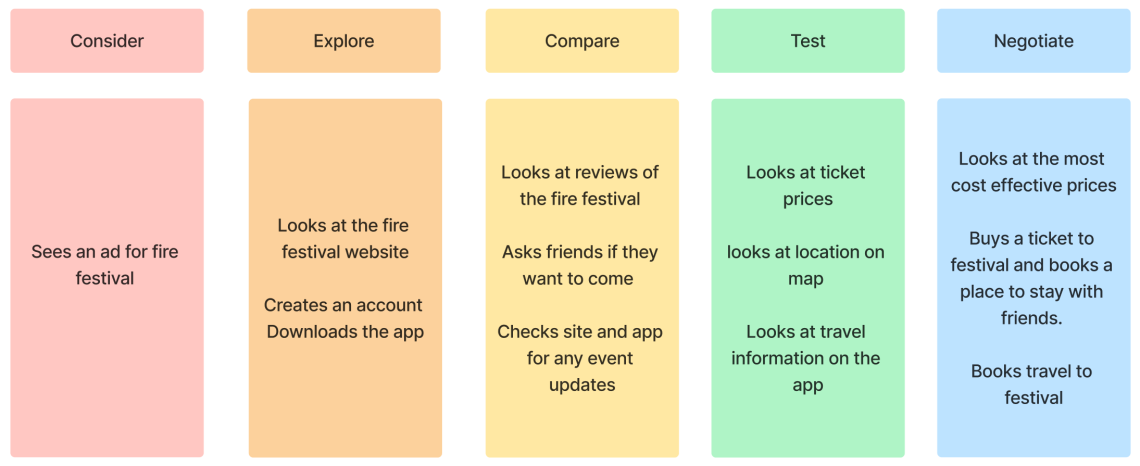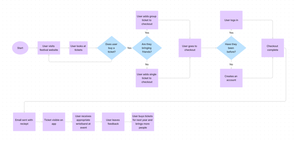 The main things the users need for the app and website is a section to view and buy tickets, an interactive map, events timetable as well as a section that tells you about the festival with contact information and FAQ’s. These sections will be prioritised when making the app/ website as anyone wanting to find out more information about the festival will most likely require one of the sections mentioned prior.