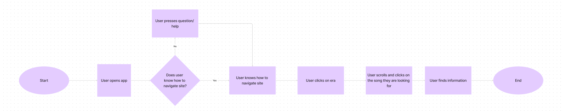 Whilst the design is simple for users to follow, the homepage may be too simple for the age group that could be using the app, similarly it would not be visually engaging. Similarly, an overlay on top of the main page may be visually overwhelming for certain users and they may not know how to get the overlay off if they have not had it on the screen before. For the era page, users do not have a lot of interactivity except from scrolling up and down, the design is also very cramped and would take a user a while to find their song – especially if it has over 30 songs.