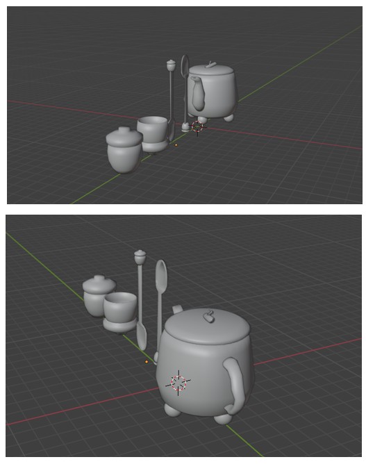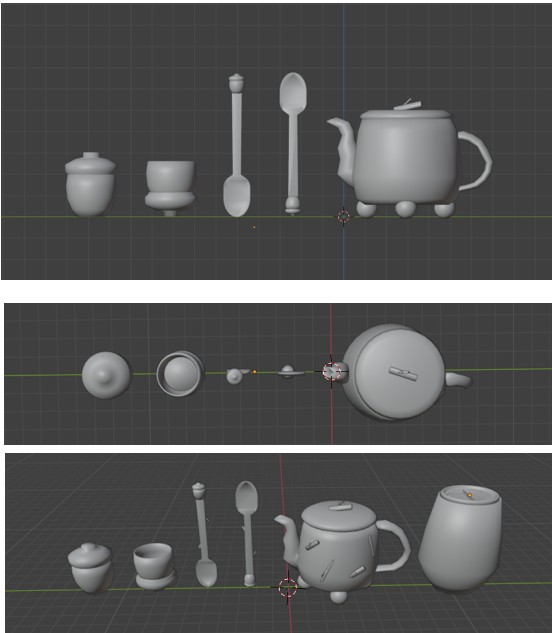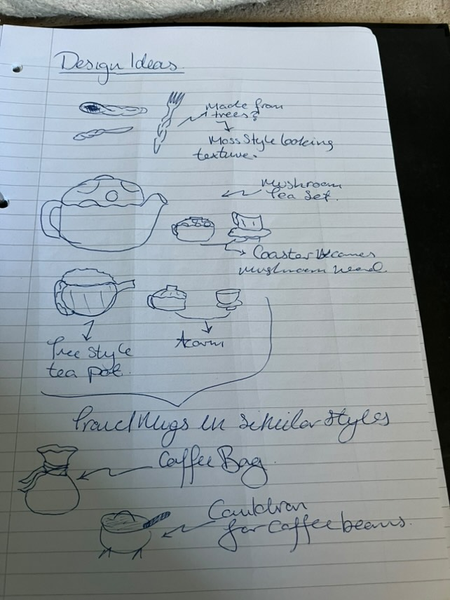The most suitable models to create for this project were a small tea set, as it directly reflects the theme and function of the teashop. ElderHollow is a fantasy-inspired venue, and incorporating tea ware will enhance the experience. As the venue is built around immersive storytelling and whimsical aesthetics, the tea set needed to feel like it belonged in that world. Creating physical items like a teapot, teacup, and spoon helped bring the setting to life in a realistic way. These pieces act as part of the world-building, reinforcing the shop’s magical and folkloric theme. As the project developed, I also decided to design a travel mug to introduce a more modern and versatile product option, extending the brand’s identity into everyday use. This addition allowed for design variety and reflects modern customer habits—bridging the magical atmosphere of ElderHollow with everyday life. The travel mug becomes a way to carry a piece of the story beyond the venue.